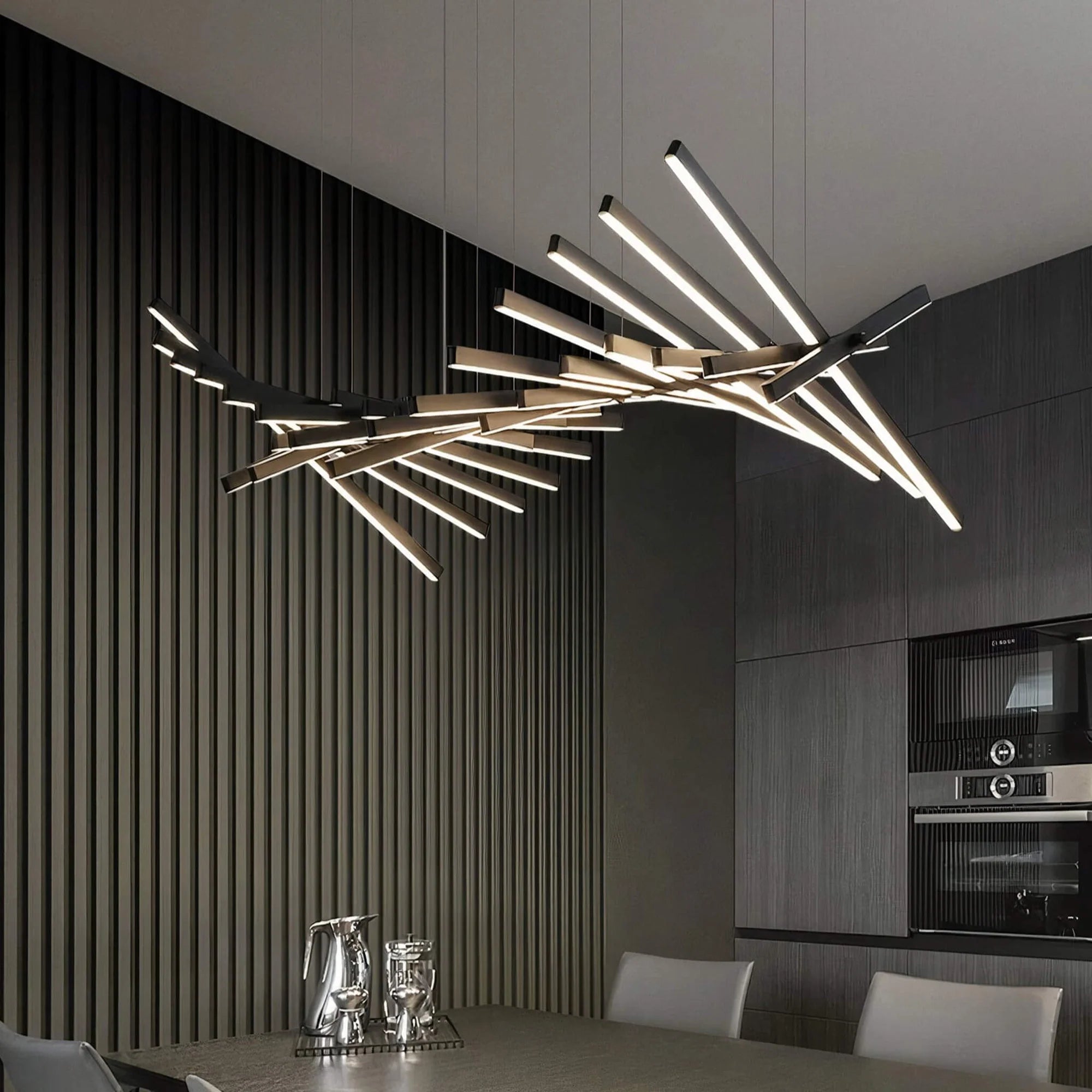 ▶︎ BOLD FLEXIBLE STATEMENT LIGHT. Configure this bold ceiling chandelier to match the style and ambiance of your space. Fully dimmable.