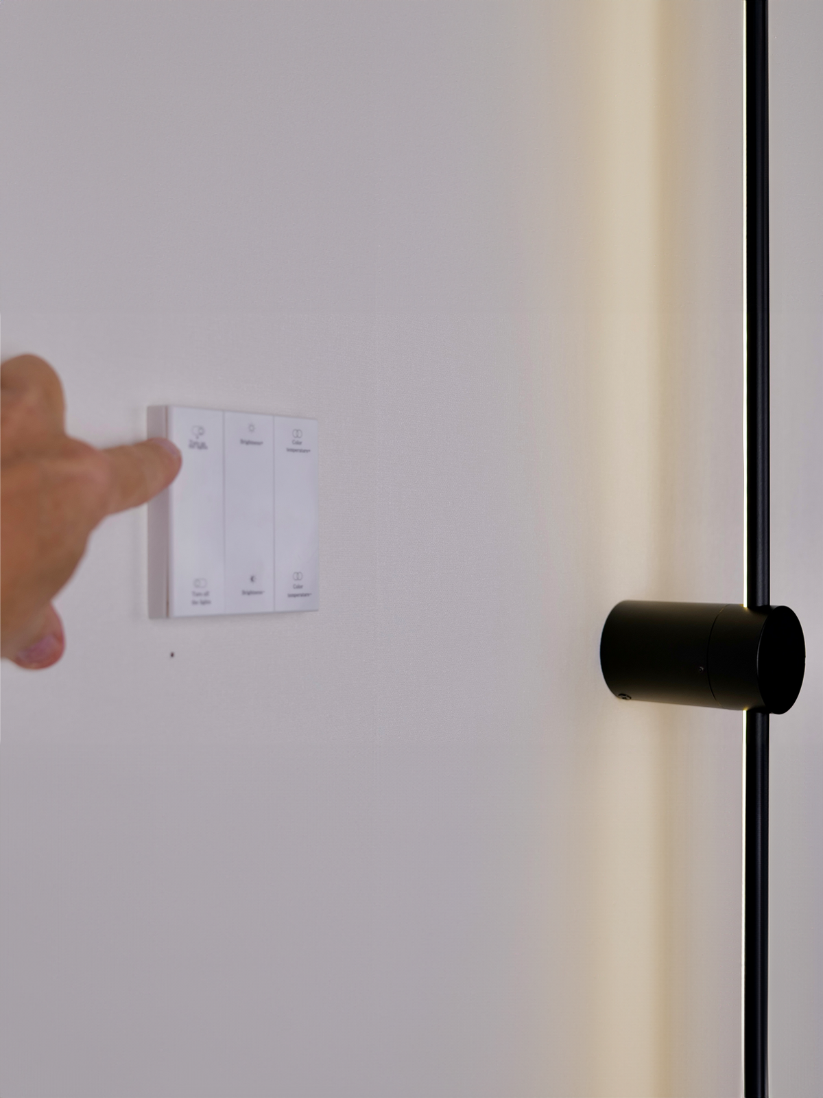 Your 2 Nordic Light Sticks include a wireless wall control that allows you easily turn ON / OFF and change light color and dim the lights.